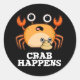 Crab Happens Funny Animal Pun Dark BG Classic Round Sticker