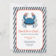 A summer-theme invitation with a blue crab and a blue and white stripe background. (Vectors by Vecteezy). The card is easy to customise with your wording, font, font colour and paper shape options. Not exactly what you're looking for? All our products can be custom designed to meet your needs at no extra charge. Simply contact us at askcottonlamb@gmail.com. Coordinating products available: Just ask us!"