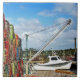 Multi coloured crab traps lead the eye to a docked fishing boat.