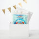 Under the sea themed cute favour bag for a pool, waterpark, beach, summer 1st or any age Birthday party with an adorable happy crab on the turquoise background. Easily personalise the number of the boy's age and the name. - Kate Eden Art