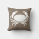 part of the ocean themed decor CRAB WHITE on coloured pillow on one side and white stripes on back. Design by Sandy Closs