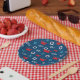 A happy crab mascot with big eyes. He is posing with his big claws up in the air, but is very friendly and cute.