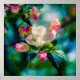 Macro view of the cream colour crabapple flower and pink buds inside a crabapple tree in bloom. Colourful photo of spring revival of nature and blossoming trees and flowers. - Flowers always make people better, happier, and more helpful; they are sunshine, food and medicine to the mind. (Luther Burbank)
