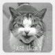 Black-and-white photograph of a yowling tabby-and-white domestic cat with customisable text.