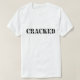The design is of expressive typography that reads "CRACKED" in black and white. It is a fun t-shirt to share with family and friends!