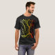 I give wanted to give this a 4 instead of a 5 because these Basic DARK T0shirts run unexpectedly SLIM or Narrow. Which is great if you do not have a potbelly, but I have a paunch. It isn't the shirt's fault that I've got a beer belly. The design and shirt itself is a quality cotton shirt. The color is more of a deep purple, but still a very pretty color. The Basic DARK T-shirts run a bit SLIMMER than the Basic Ts. The neck is a fraction narrower (or seems to be narrower) also. I'm a paunchy middle-aged woman and my neck is 12 inches (31cm) thick and the neckline fell about the same as in the photo of the man, and I had the desire to tug it a bit. So if you're a thick necked man or like loose shirts, be aware these are slimmer shirts. Once I get rid of my lockdown paunch it'll look great. The shirt washed well in cold water with no apparent bleeding. We don't have a dryer, so it hung dry. Did not shrink. Love the colors and the design. The design looks smaller on my shirt than it does on the model on-line. But still, it looks good on the shirt. The printing looks as it does on the model, just the size seems fractionally smaller. Washed garment in cold water, hung dry and design appeared unaffected.