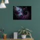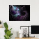 This fractal abstract art design features a pattern of purple, blue, violet, and pink spiralling around and glowing almost with a neon effect.