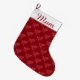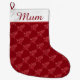 Sewn effect red Christmas trees with printed button baubles on red personalised Christmas stocking.