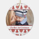 Craft checked red and pink Christmas trees and hearts pattern on baby's first Christmas tree ornament to personalise with your photo and text.
