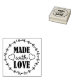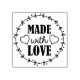 Made With Love Rubber Stamp - An incredibly cute rubber stamp with a leaf wreath surrounding the message "Made with Love" decorated with two little hearts. The stamp you want to mark your hand crafted goodies for business or just as gifts for your friends. Don't forget to check our craft and cooking stamp collection for more fantastic options.