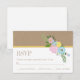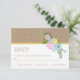 Craft paper and pink, aqua flowers wedding RSVP Card