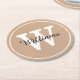 Stylish pulp board paper coasters done in a brown craft paper look, with graphics of a white dotted circle around the outside edge. Personalise the large white one letter monogram and black script text to suit your needs. Great for anytime use and makes a nice gift idea.