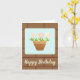 A Birthday card that features a print of my hand made craft punch daisies in a pot, two white daisies and one pink. The backdrop depicts the bricks of a house, giving the card a cosy vibe. On the inside of the card, the words "HAPPY BIRTHDAY" have touches of light green to add some colour. Great to send to someone who likes flowers or gardening.