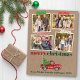 Merry Christmas 4 Photo Collage Holiday Postcard includes Craft Tape and Watercolor Vintage Red Truck with Christmas Tree. Rustic Kraft Paper.