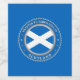 The national flag of Scotland, St. Andrew`s Cross or Saltire, is infused into a ring that is not unlike a cog or gear. The colouring of the ring is in the blue colour of the flag, and the text and decorative stars that are around the ring, are done in faux silver. The text and decorative stars have been given a raised look, which helps with their definition.