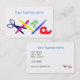 This is a modern, simple, funky fun style of business card with a white background and rounded corners, decorated with a row of brightly coloured desk items - scissors, pen, artist brush, paper clips and selotape holder. It's suitable for a crafter, teacher, artist, painter, or designer. The back of the card is fully personalizable with your name and details.
