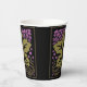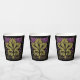 These paper cup features Leslie Sigal Javorek's adaptation of a classic American Craftsman pattern, with a large single mossy green grape leaf, umber shaded vines, surrounded by masses of grapes in orchid gradients, all set on black for dramatic flair. Perfect for your next Wine Tasting Party!