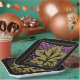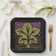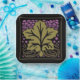 These paper plates feature Leslie Sigal Javorek's adaptation of a classic American Craftsman pattern, with alarge single mossy green grape leaf, umber shaded vines, surrounded by masses of grapes in orchid gradients, all set on black for dramatic flair. Perfect for your next Wine Tasting Party!