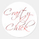 Are you a crafty thinker? Or is crafty to you quilting, scrapbooking, knitting, crocheting or one of the many other craft hobbies? Show it in style with 'Crafty Chick'! Stylish statement design featuring thin, red, cursive effect letters, for a simple but effective way to tell the world you are proud of your creativity! Great gift idea!