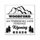 Rustic retro return address rubber stamp with retro fonts, craggy mountains, and spruces.