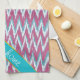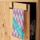 Cranberry and Teal iKat ZigZag Pattern Tea Towel
