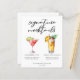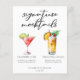 This chic signature mocktails menu paper sheet features simple black tyopgraphy above 2 cute drinks and their ingredients for your wedding bar. A Cranberry Cutie or non-alcoholic Cosmopolitan and a virgin Piña Colada add a cool flair to your bar menu. Complete with the couple's names and date for their reception.