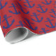 Cranberry Red, Navy Blue Anchors Pattern Wrapping Paper