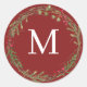Cranberry Red Rustic Christmas Wreath Monogram Classic Round Sticker