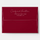 Cranberry red colour mailing envelope for your wedding invitations and features your name and address printed on back flap in a modern script style. Personalise your envelope by editing and replacing name and address with your own. Edit further to change font style or colour. Select your envelope size that fits your invitation.