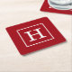 Cranberry Red White Framed Initial Monogram Square Paper Coaster