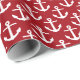 Cranberry Red White Nautical Anchors Pattern Wrapping Paper