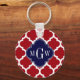 Cranberry Wht Moroccan #5 Navy Blue Name Monogram Key Ring