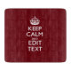 Your personalised Keep Calm saying on a fine custom burgundy red accent colour style decor. A personalised Keep Calm style saying on a one of a kind gift. Humourous or whimsical try on your creative words on two editable lines of text. Remember to use CAPITAL letters for best results.