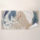 Crane and Japanese wave illustration. Traditional Bath Towel