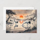 Crane in the Marsh at Sunset Chinese Ink Painting Postcard