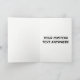 This card is great fun and good quality. I loved the humour inside and on the back. There is the opportunity to change the orientation of this card from landscape to portrait, which I did. It is relatively straightforward to amend the typeface to fit the new orientation. It was well packaged with no plastic. The printing on this card is excellent.