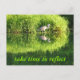 Crane is reflected in a pond's water with the brilliant green colours or weeds and trees in the background. The words "take time to reflect" are imprinted on the item.
