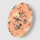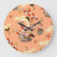 Cranes, sakura, colourful, floral, cantaloupe. large clock