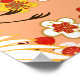 Cranes, sakura, colourful, floral, cantaloupe. poster