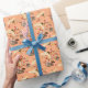 Cranes, sakura, colourful, floral, cantaloupe. wrapping paper