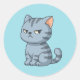Cranky Grey Tabby Cat on Blue Classic Round Sticker