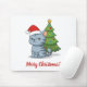 Cranky Grey Tabby Cat Red Hat Christmas Tree Mouse Mat