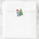 Cranky Grey Tabby Cat Red Hat Christmas Tree Square Sticker