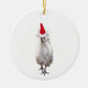 Cranky Silkie Bantam Chicken Santa Hat Christmas Ceramic Tree Decoration