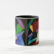 Mod retro looking abstract fine art painting in acrylic that reproduces on this mug as though it were a tapestry because the weave of the canvas shows. Very interesting effect. Part of a series of paintings.