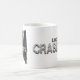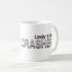 This mug depicts a tattered image featuring the cover design of the book Crashers by Lindy S. Hudis. Perfect for any fan of the book and/or author.