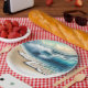 Crashing Ocean Waves Rustic Coastal Beach Wedding Paper Plate