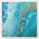 Square glass coaster with an image of aqua, blue and brown fluid art resembling a crashing wave. See matching square paper coaster, square plastic coaster and round sandstone coaster. See the entire Under the Sea Coaster collection in the FOOD/BEV | Coasters section.