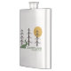The product is a good size and came exactly as it was pictured. The lid is not attached to the flask, which could be dangerous on drunken nights... The print came out surprisingly well and looks very sharp. Would definitely recommend.