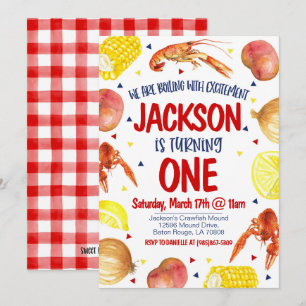 Red Gingham Crawfish Boil Seafood Summer Party Invitation